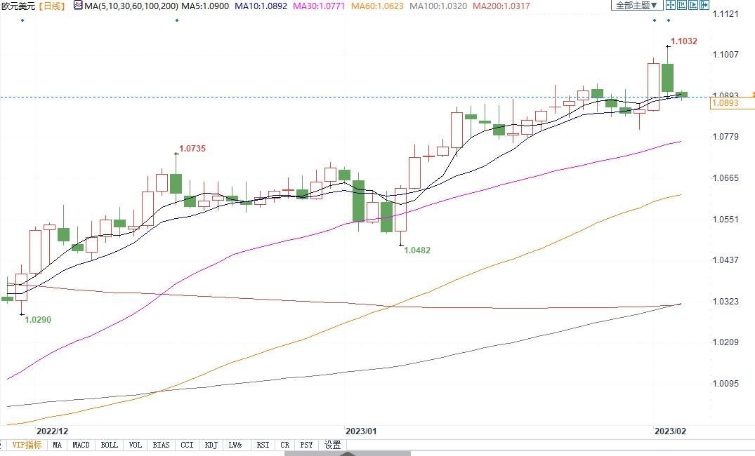 北京时间2月3日16:32,欧元兑美元报1.0890/91