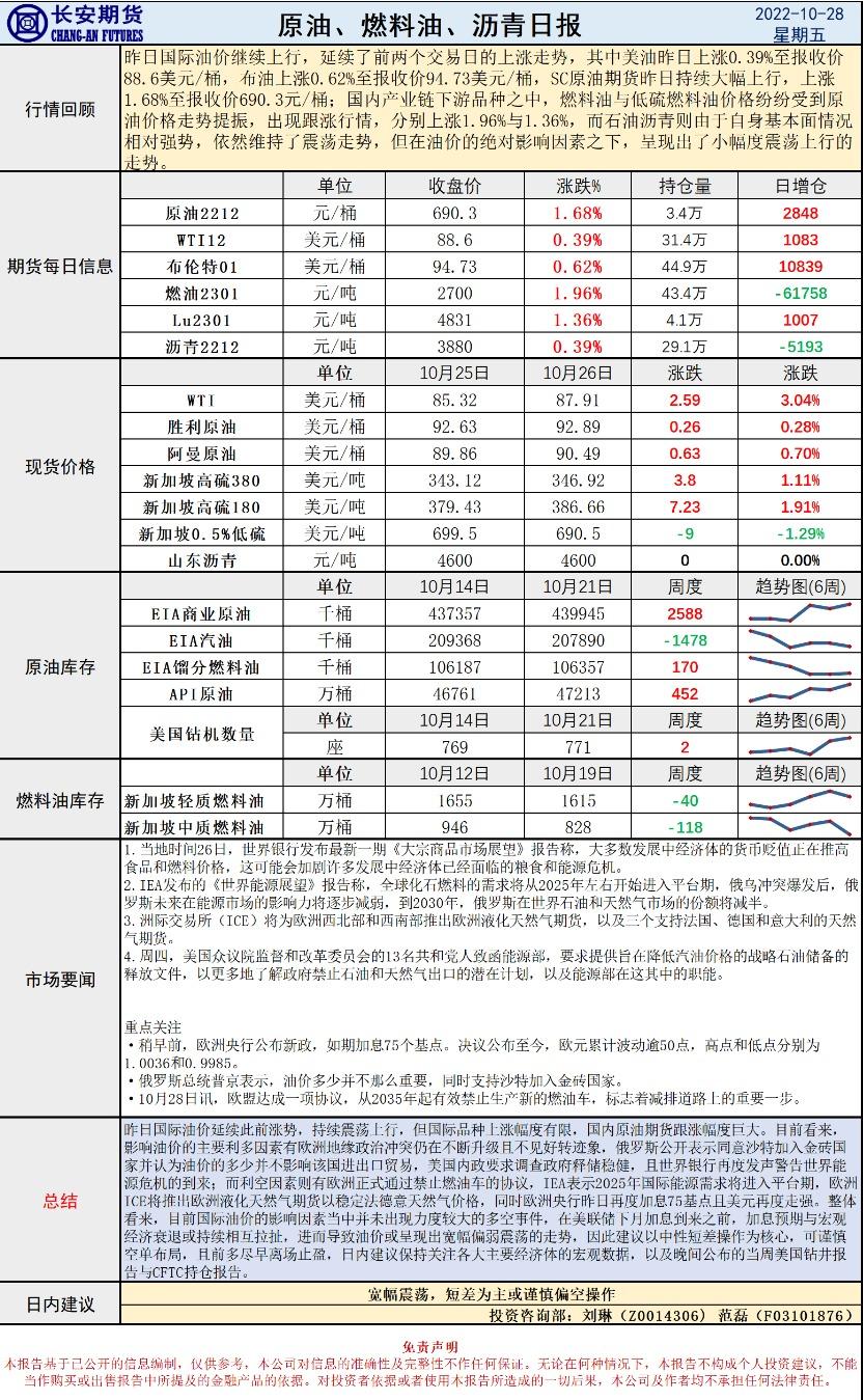 标题:长安期货原油早评:建议短差为主或谨慎偏空操作