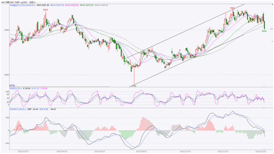 美国非农数据意外强劲以及美联储官员鹰派言论都给沪金压力。沪金连续两个交易日下跌,同时KDJ指标下行,MACD变为绿柱,显示动能方向偏空。短期沪金或继续承压。策略上,建议暂时观望,近期关注沪金能否守住40和60均线支撑位。