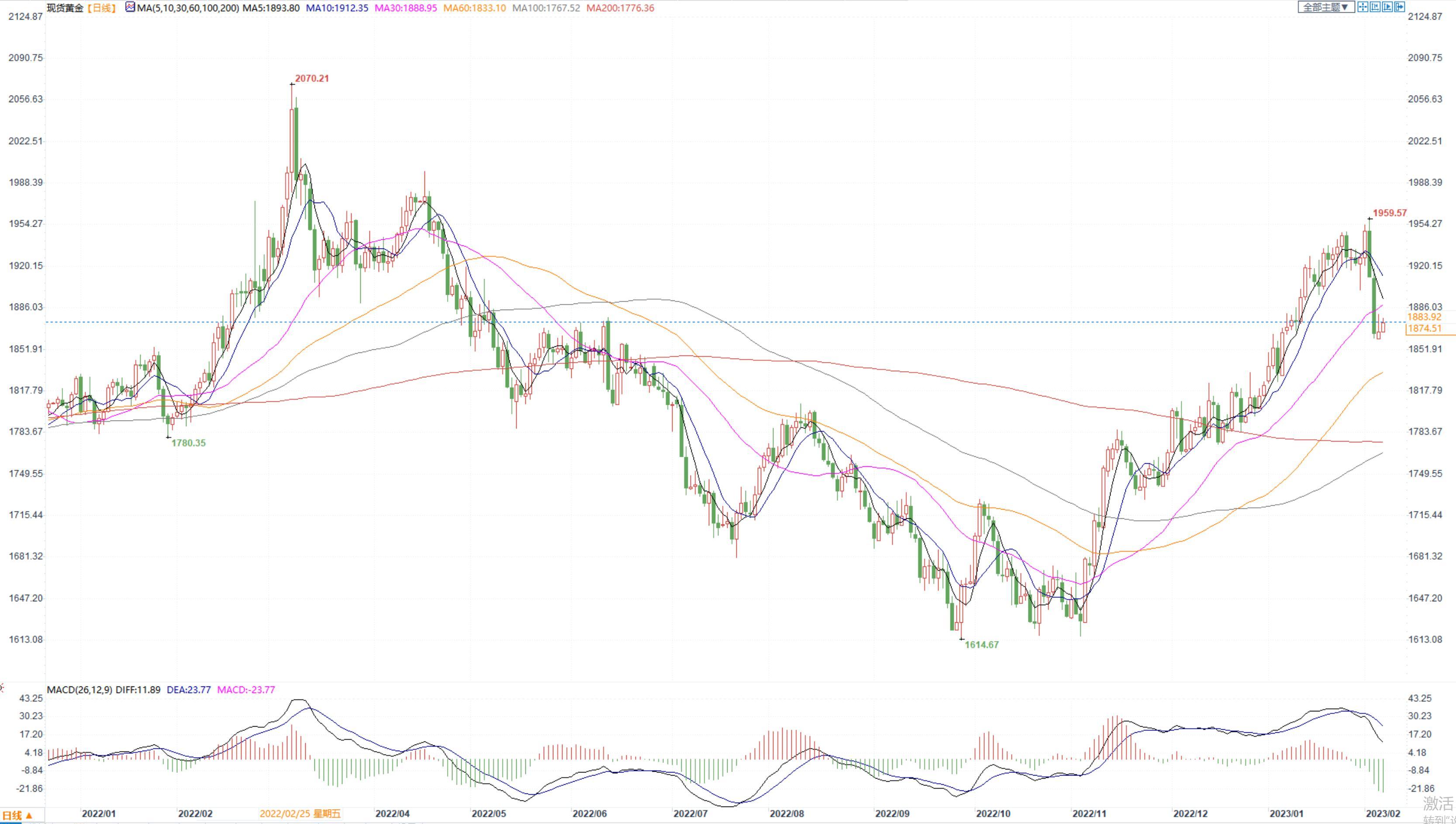 【基本面】超预期强劲的1月就业数据一定程度上减弱了市场对于美联储年内降息的预期,同时隔夜博斯蒂克的鹰派发言使得3月加息25个基点的预期概率接近100%,美元指数和美债收益率同步走强,对金银短期压制增强。中期美联储2月连续第二次放缓加息,加息幅度为25个基点,目前已基本到加息的尾声,金银大趋势上是明朗的。
