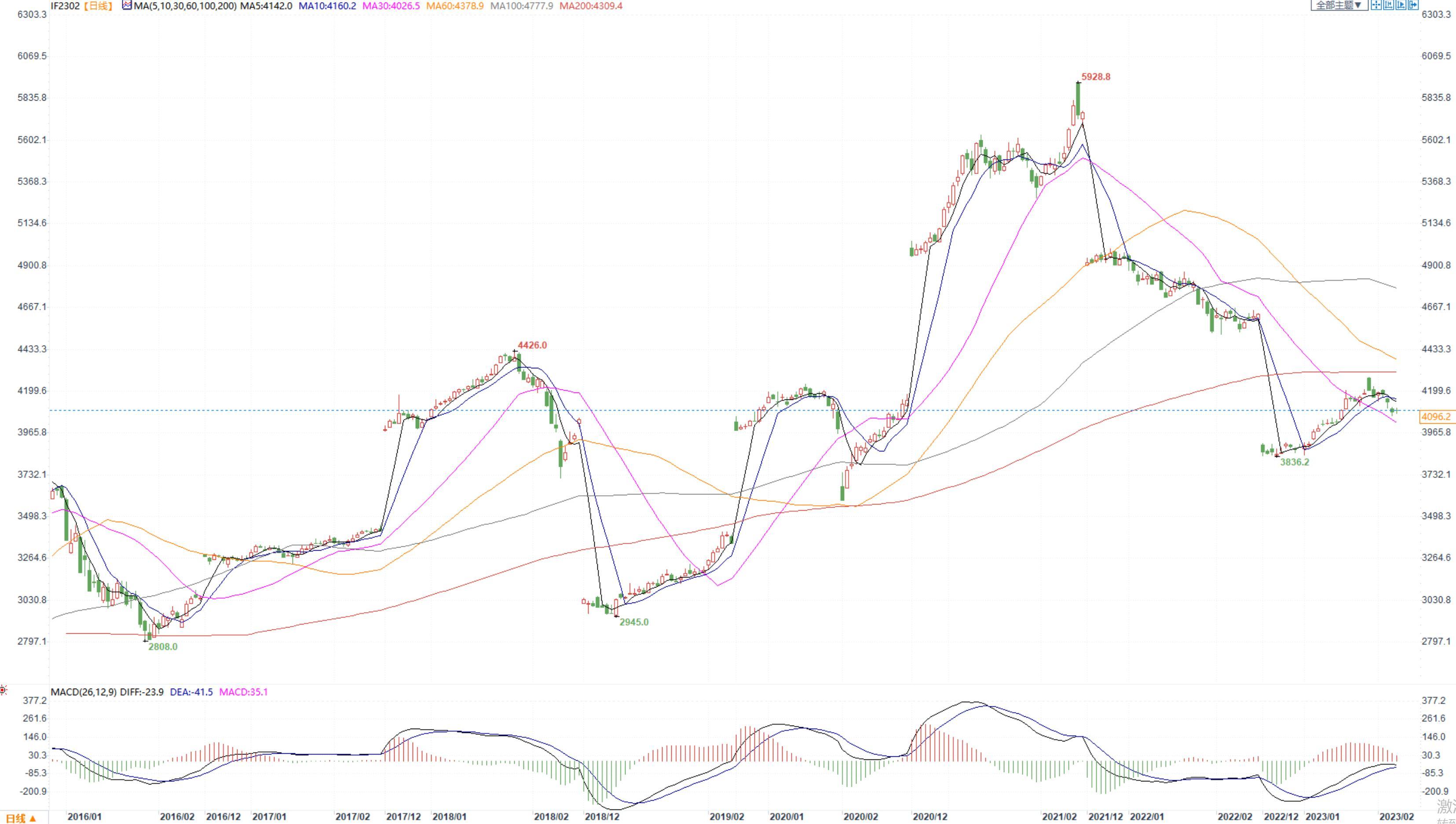 【基本面】经济端,国内疫情防控措施全面优化之后,1月制造业PMI和非制造业PMI均超预期重返扩张区间,且是去年10月以来首次重回50上方。随着2月各地逐渐进入正常生产和生活活动,2023年整体景气预期有望回升。政策端表现平平,尽管一直有声音传出要加大对消费的刺激,但仍未看到真正的政策出来,而且疫情三年以来对居民消费信心的打压也是很难短时间得到快速恢复的。因此,中期来看,我们看好股指在前半年的表现,但很难出现单边向上趋势,更多可能是震荡向上。