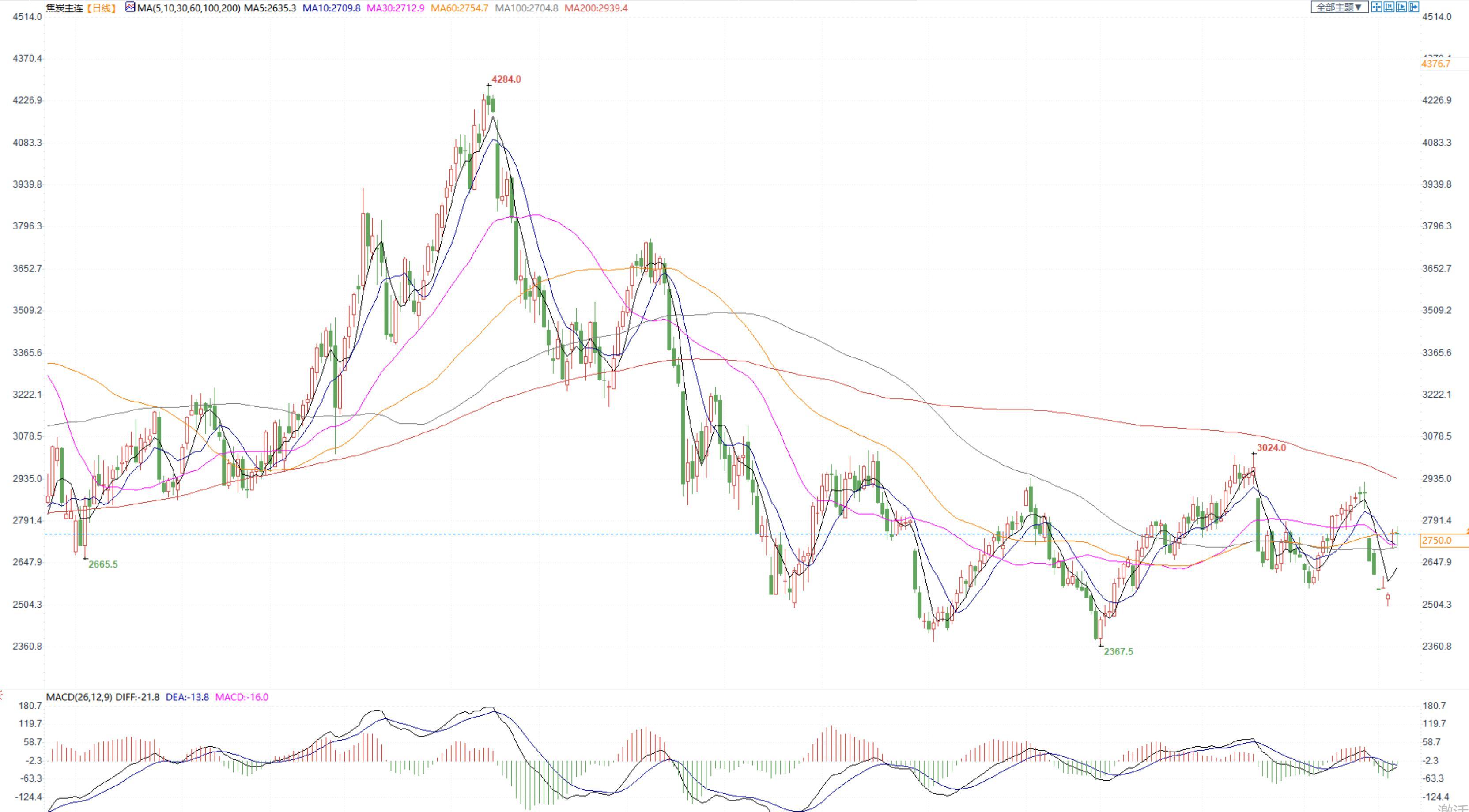 价格:今日05合约震荡运行收于2750,港口准一级资源仓单成本2851元/吨。现货焦炭市场持稳运行。