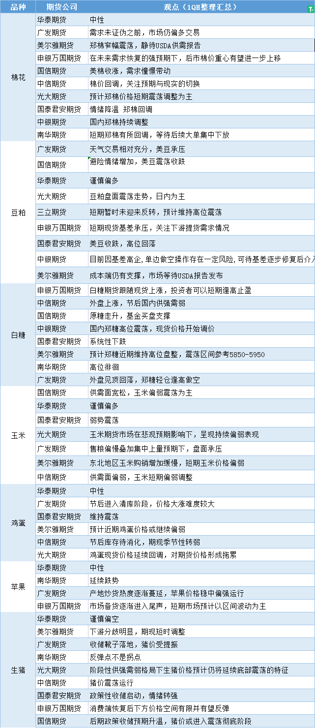 期货公司观点汇总一张图:2月8日农产品(棉花、豆粕、白糖、玉米、鸡蛋、生猪等)