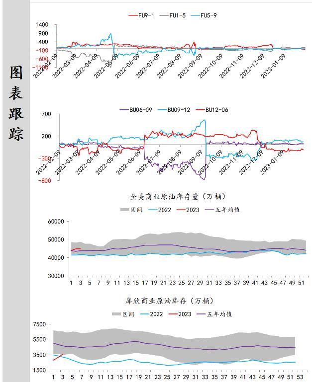 供应端:据美国能源信息署最新数据显示,截止2023年1月27日当周,包括战略储备在内的美国原油库存总量82426.7万桶,比前一周上升414万桶;美国商业原油库存45268.8万桶,比前一周上升414万桶;战略原油库存量37158万桶,与上期持平;美国汽油库存总量23459.8万桶,比前一周上升257.6万桶。商业原油库存比去年同期高9.07%,比过去五年同期高3.46%;汽油库存比去年同期低6.17%,比过去五年同期低约6.79%;馏分油库存比去年同期低4.20%,比过去五年同期低17.13%。
