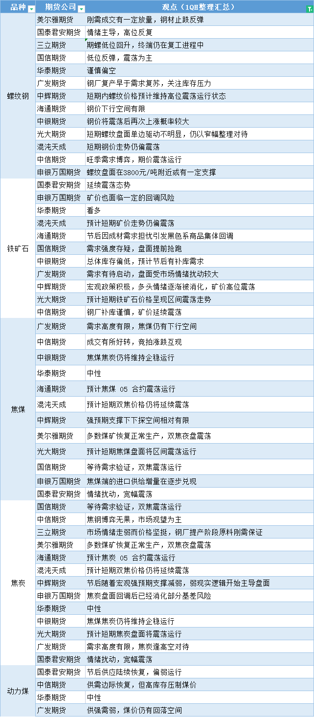 标题:期货公司观点汇总一张图:2月9日黑色系(螺纹钢、焦煤、焦炭、铁矿石、动力煤等)