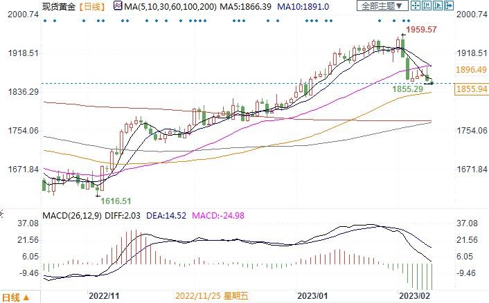 北京时间2月10日13:13,现货黄金报1853.09美元/盎司