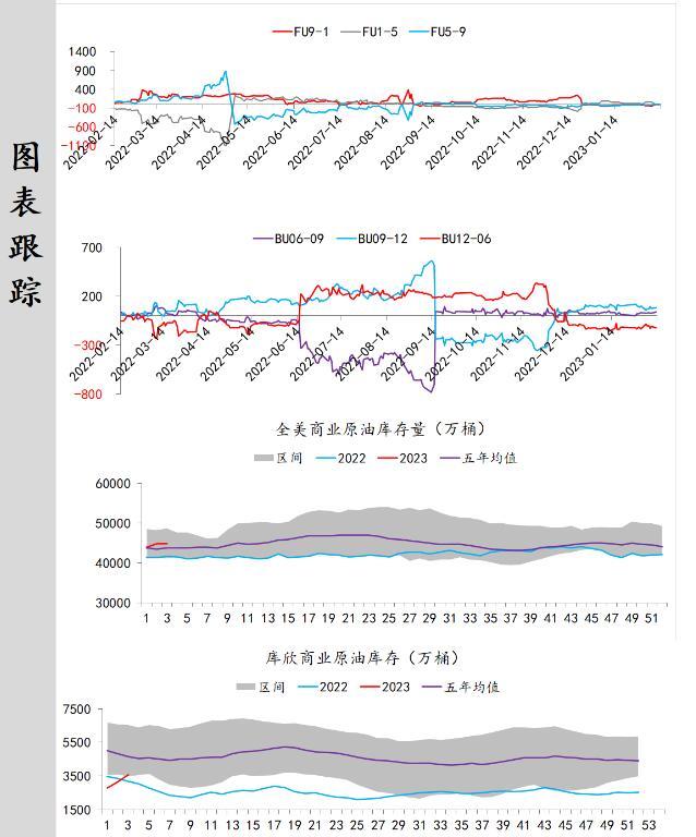 供应端:据美国能源信息署最新数据显示,截止2023年2月3日当周,包括战略储备在内的美国原油库存总量82669万桶,比前一周上升242.3万桶;美国商业原油库存45511.1万桶,比前一周上升242.3万桶;战略原油库存量37158万桶,与上期持平;美国汽油库存总量23960.6万桶,比前一周上升500.8万桶。商业原油库存比去年同期高10.90%,比过去五年同期高3.98%;汽油库存比去年同期低3.54%,比过去五年同期低约5.30%;馏分油库存比去年同期低1.06%,比过去五年同期低14.97%。