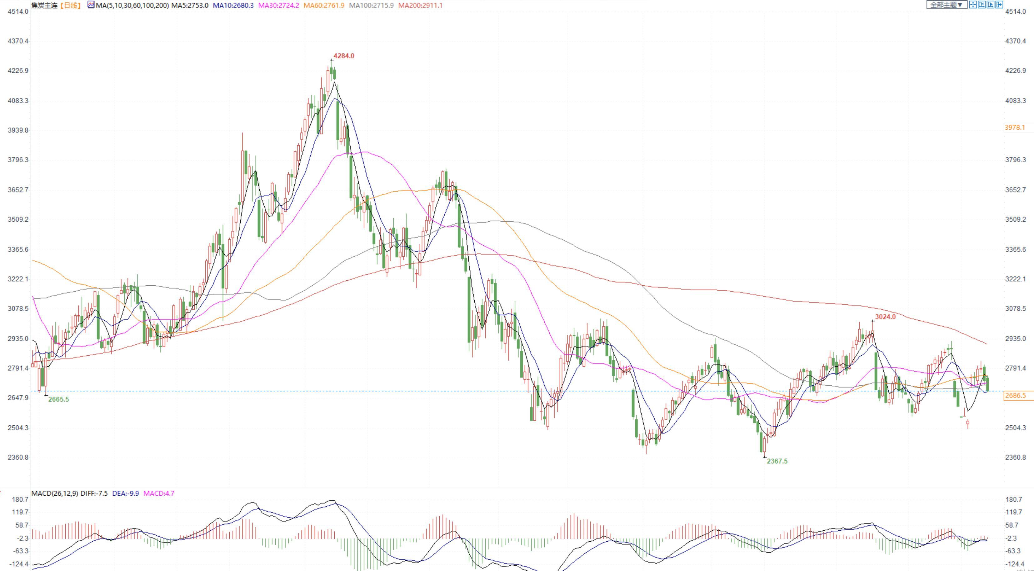 价格:今日05合约增仓下行收于2686.5,港口准一级资源仓单成本2851,焦炭市场弱稳运行。