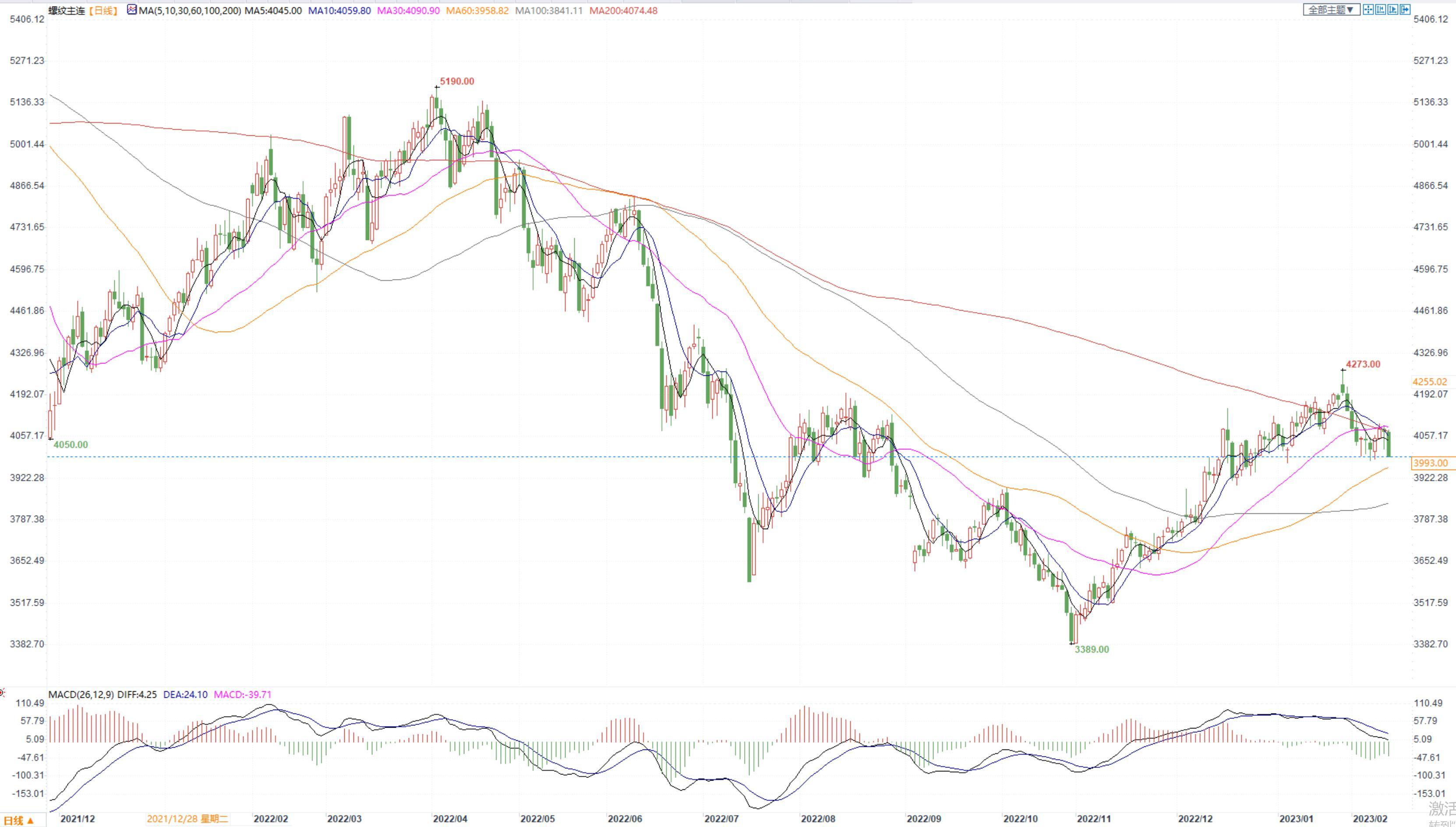价格:螺纹钢2305合约夜盘震荡运行,周一开盘后迅速下行,白天一直处于流畅下行中,收盘价3993元/吨,再次跌至4000点下方,较前一交易日下跌65点,收跌1.6%。现货价格再次回落,上海中天现货价为4110元/吨,环比下跌30元/吨。