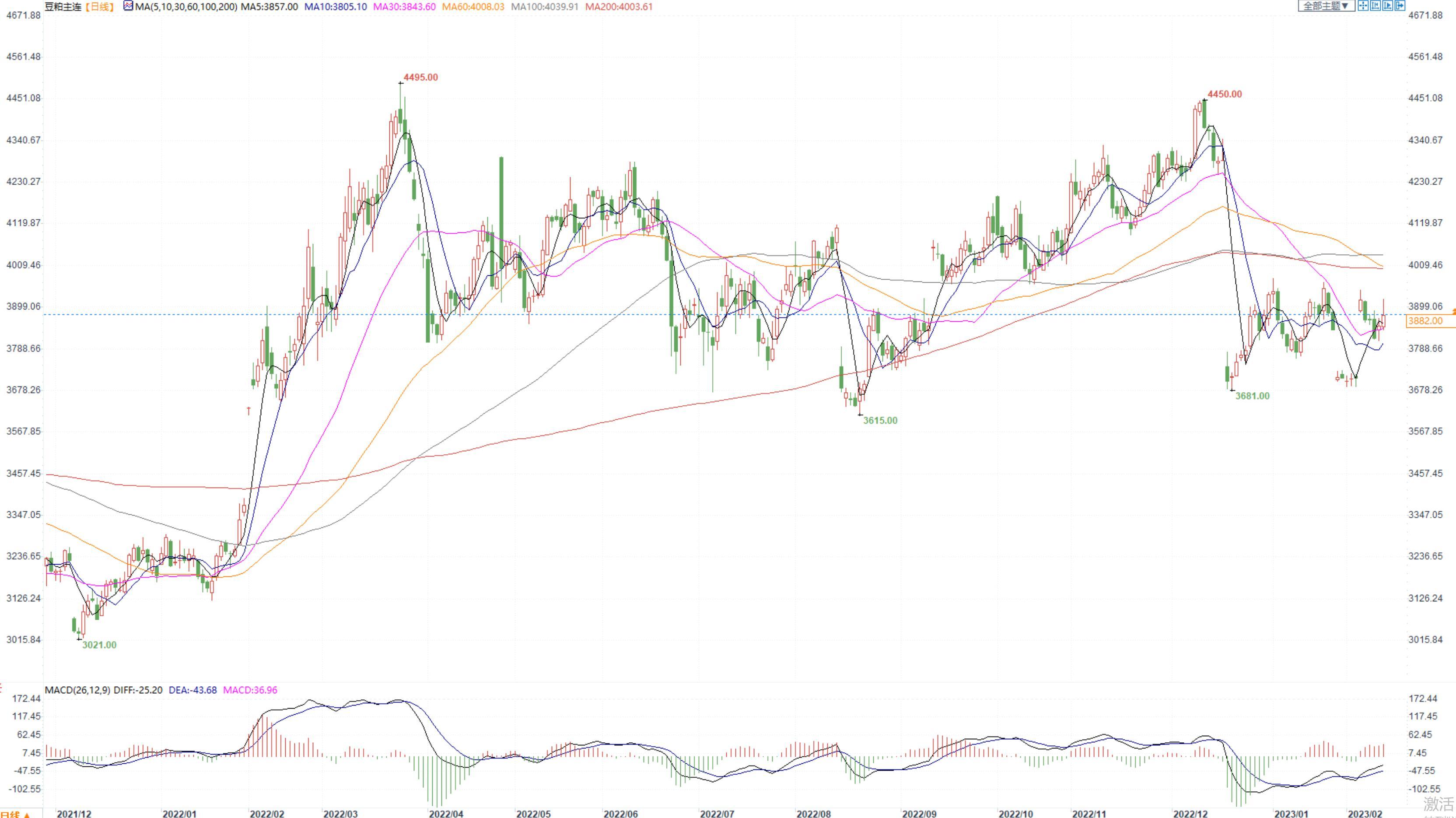 豆粕2305合约日内涨0.96%,收盘价3882元/吨,张家港市场豆粕4580元/吨。