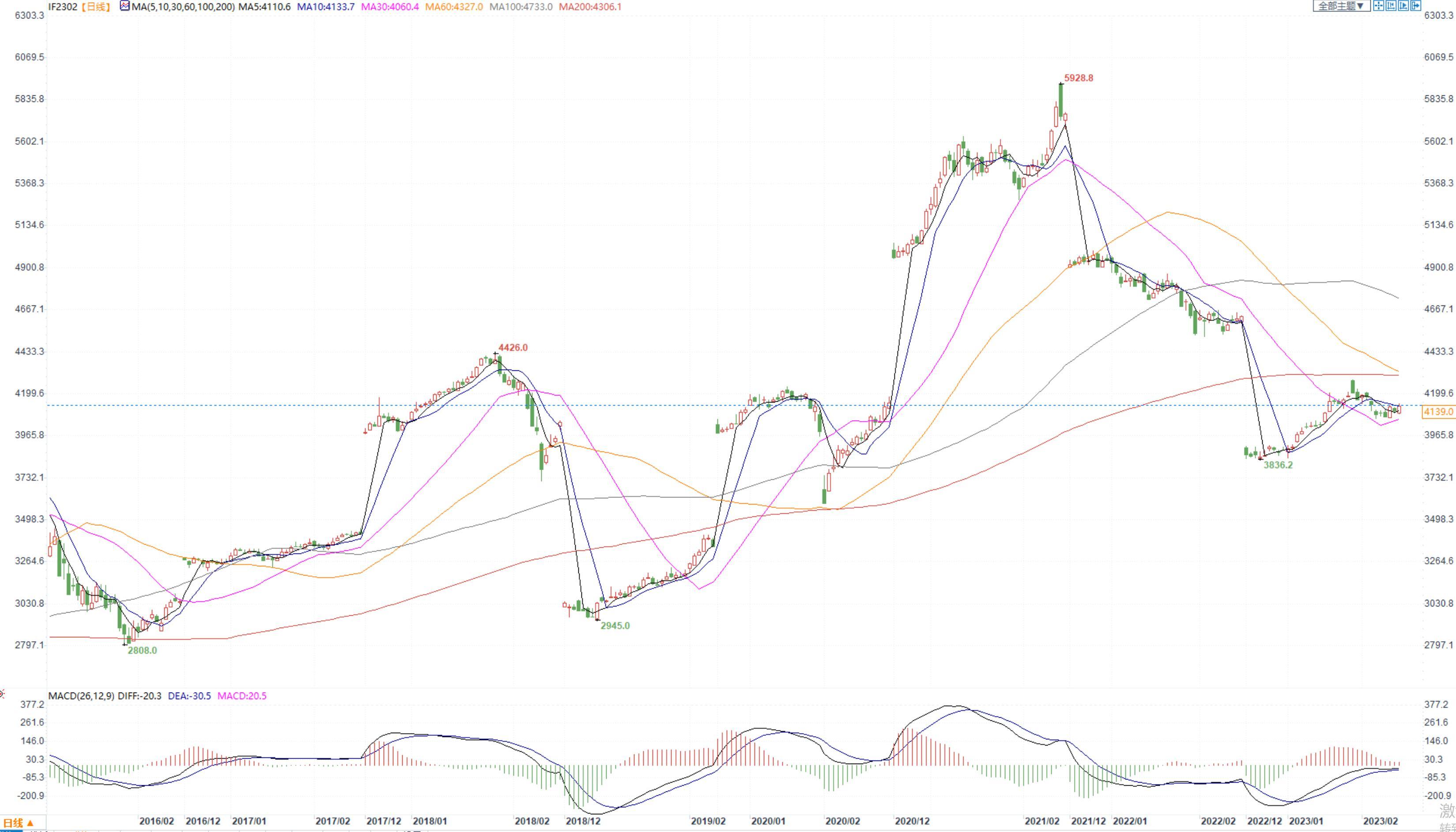 【今日涨跌】四大期指全线收涨。IH2302收盘价为2769.0,收涨0.61%;IF2302收盘价为4139.0,收涨0.80%;IC2302收盘价为6371.2,收涨0.65%;IM2302收盘价为7039.6,收涨1.02%。