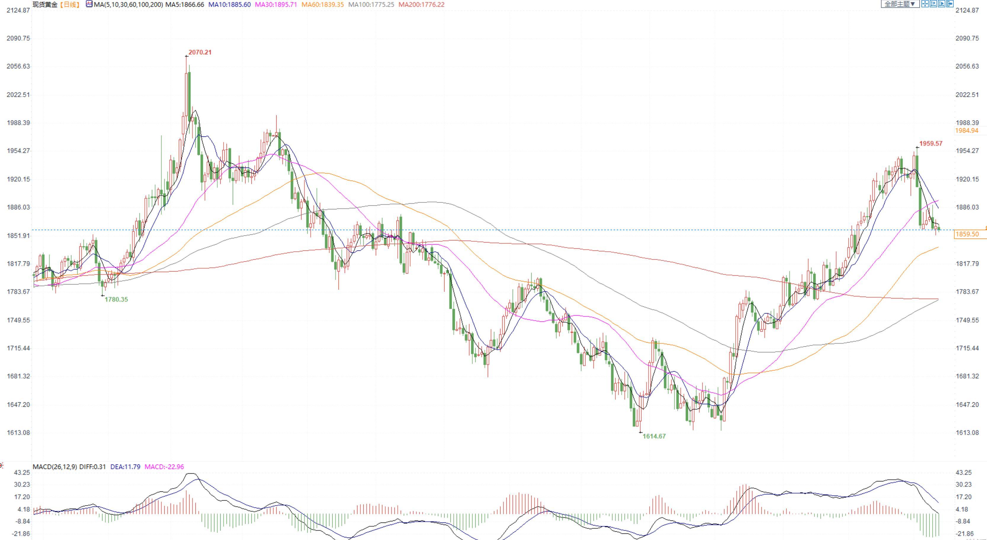 【今日行情】金银涨跌互现。AU2304收盘价为413.08,收涨0.27%;AG2306收盘价为4939,收跌0.62%。上周五晚间美元指数“V”型反弹走强,今日也是震荡偏强,仍处于103关口之上,十年期美债收益率大幅上升至3.7%,短期对金银支撑减弱。