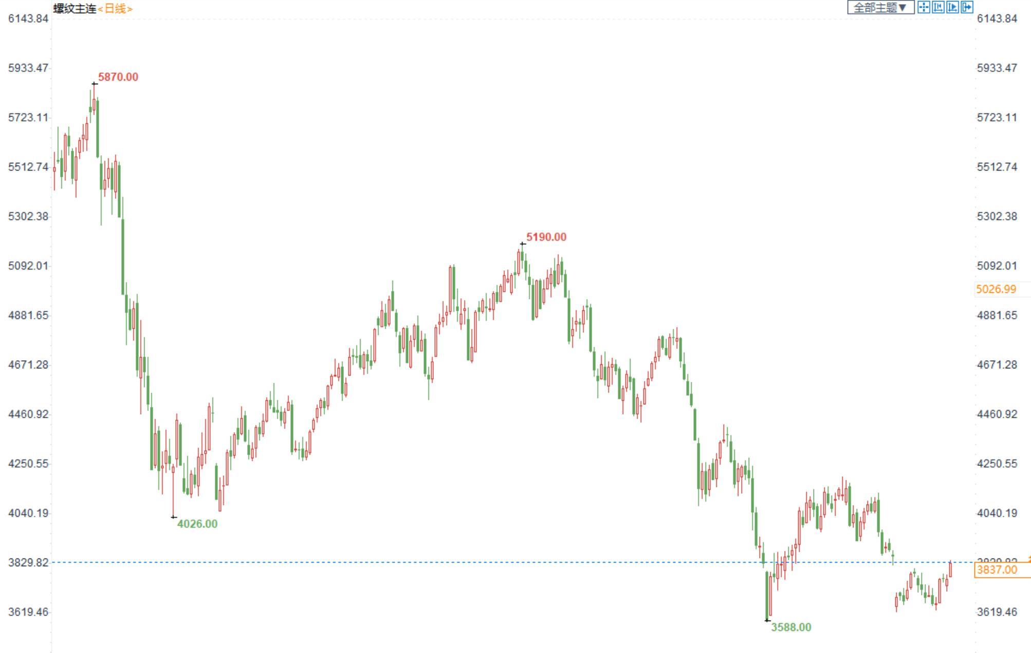 价格:螺纹钢2301合约今日强势上行,创近一个月的高位3845,收盘于3837元/吨,收涨2.29%。上海中天现货价为4030元/吨,较昨日上涨50元/吨。