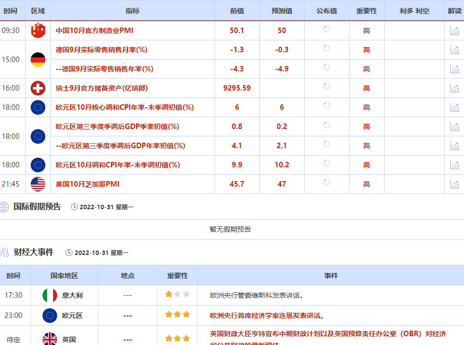 在美国经济数据公布后,美元上涨0.3%,指标美国国债收益率也攀升。?人们普遍预计美联储将在11月1-2日的政策会议上加息75个基点。对于12月,交易员们多数预计将加息50个基点。?