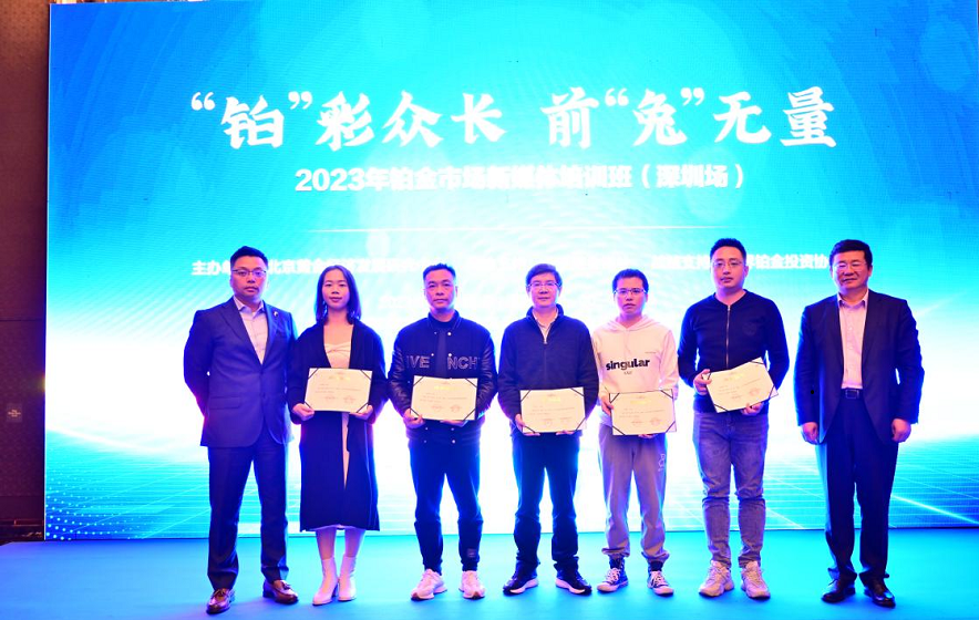 主题课程结束后,主办方为参会记者颁发了“铂”然新生,前“兔”无量——2023年铂金市场新媒体培训班结业证书。