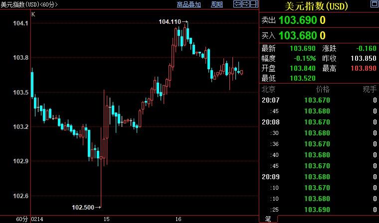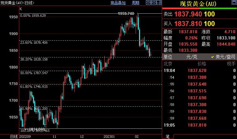 北京时间20:08,现货黄金上浮0.06%至1836.95美元/盎司;COMEX期金主力合约上浮0.07%至1846.5美元/盎司;美元指数下跌0.17%至103.688。
