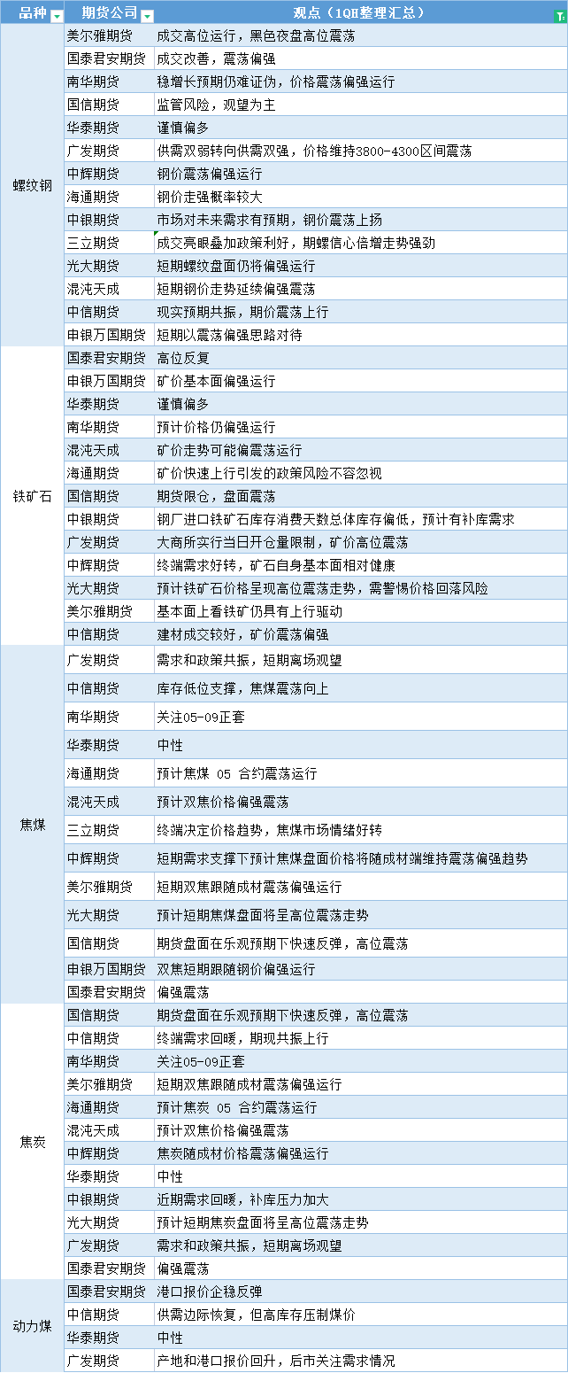 标题:期货公司观点汇总一张图:2月22日黑色系(螺纹钢、焦煤、焦炭、铁矿石、动力煤等)