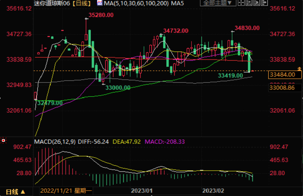 截止当天收盘,道琼斯工业平均指数下跌697.1点,跌幅2%,至33129.59点。在三大指数中,道指率先回吐了今年以来的所有涨幅。