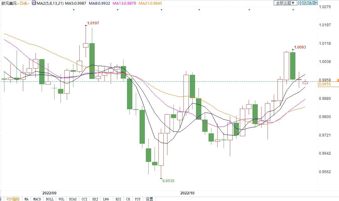 北京时间10月31日10:56,欧元兑美元报0.9954/55