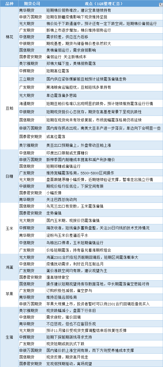 标题:期货公司观点汇总一张图:11月1日农产品(棉花、豆粕、白糖、玉米、鸡蛋、生猪等)