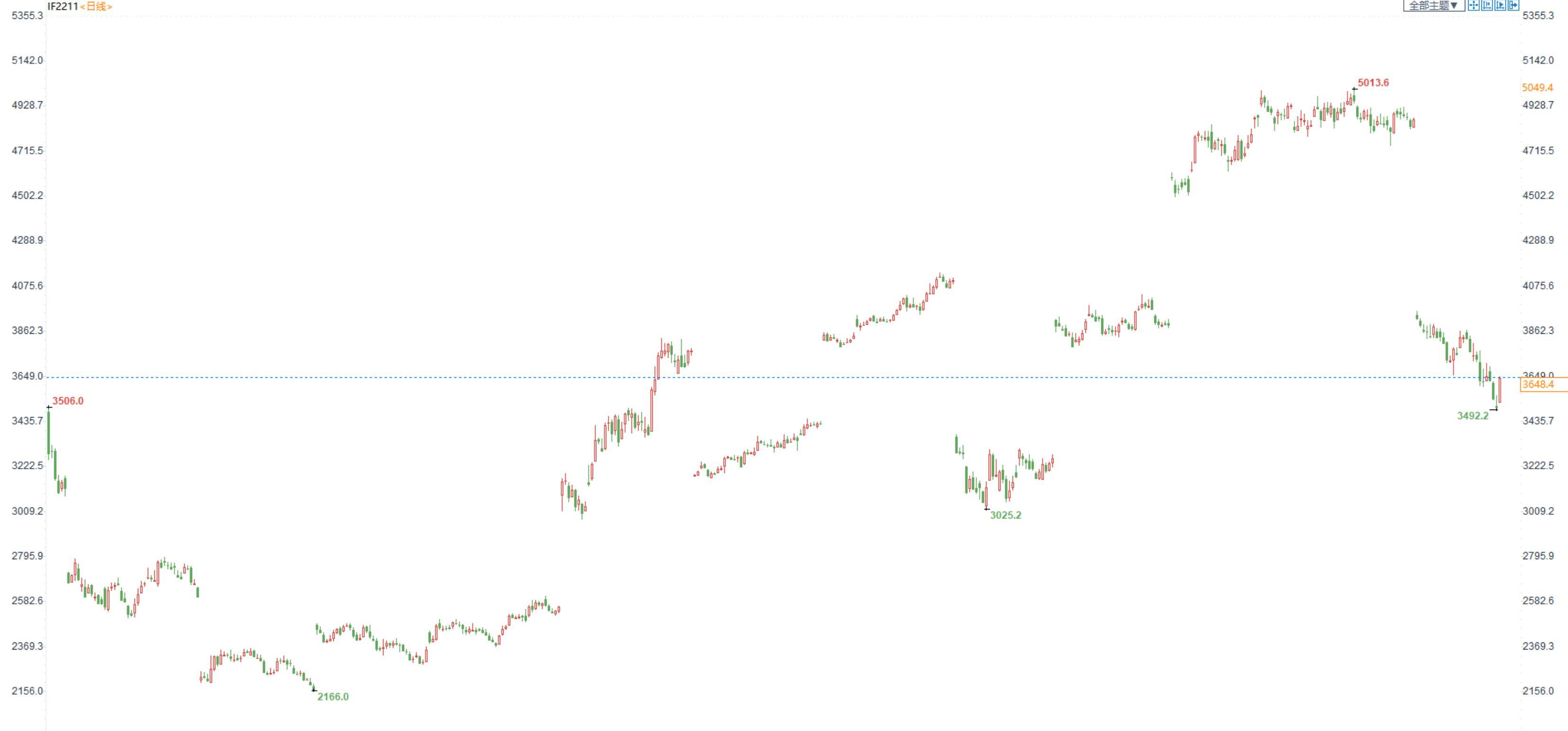 【今日行情】四大期指全线收涨。IH2211收盘价为2403.2,大幅收涨2.78%;IF2211收盘价为3648.4,大涨4.08%;IC2211收盘价为5965.4,收涨2.76%;IM2211收盘价为6471.0,收涨3.14%。在线旅游迎政策支持,今日午后经济复苏行业全线走强,市场止住回落势头再度上冲,消费者服务板块涨近8%,其次是食品饮料涨逾7%。两市超4400只个股收涨,市场成交额大幅增至9780.18亿元。