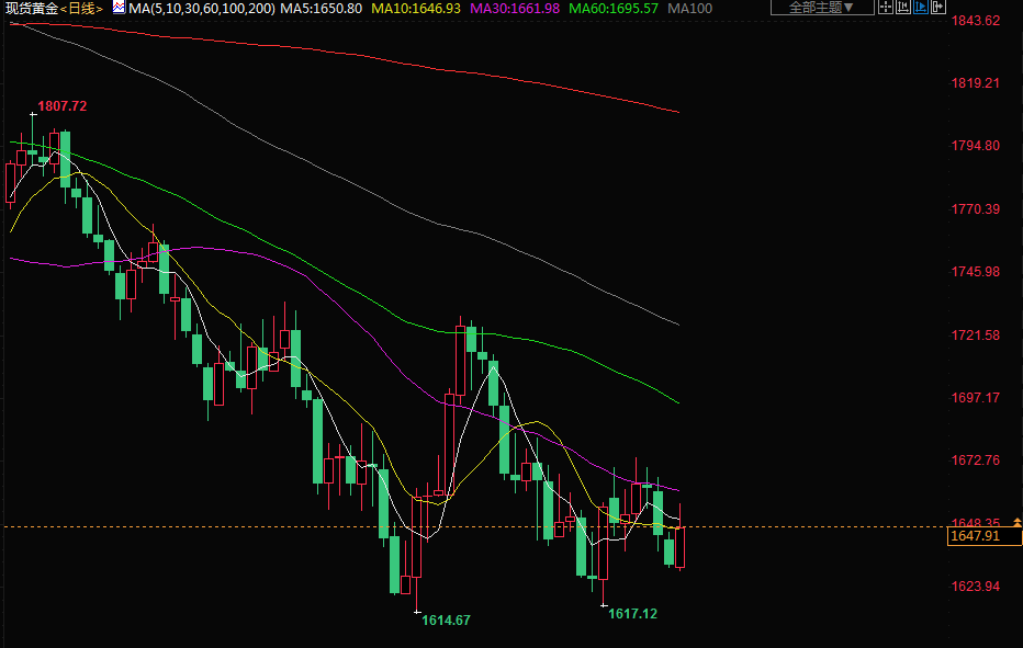 指标10年期美债收益率回落,因猜测美联储本周可能发出放缓政策紧缩步伐的信号,但预计此次会议将再加息75个基点。?由于美联储快速加息,黄金价格自3月升穿每盎司2000美元的水平以来,已经下跌了约21%。
