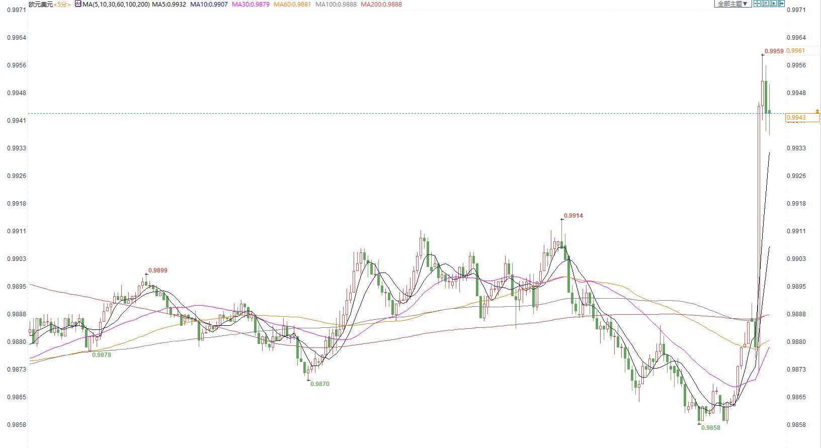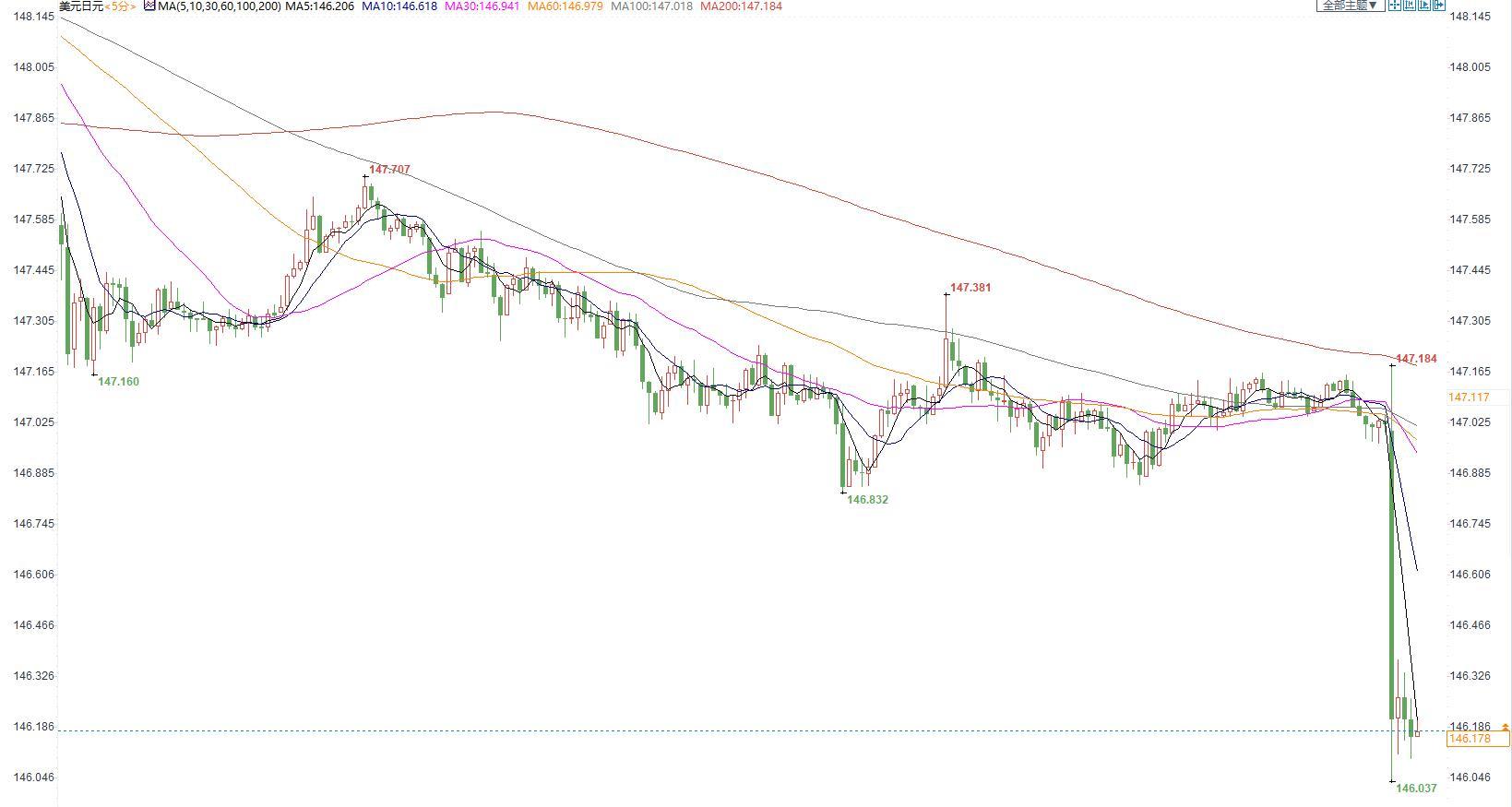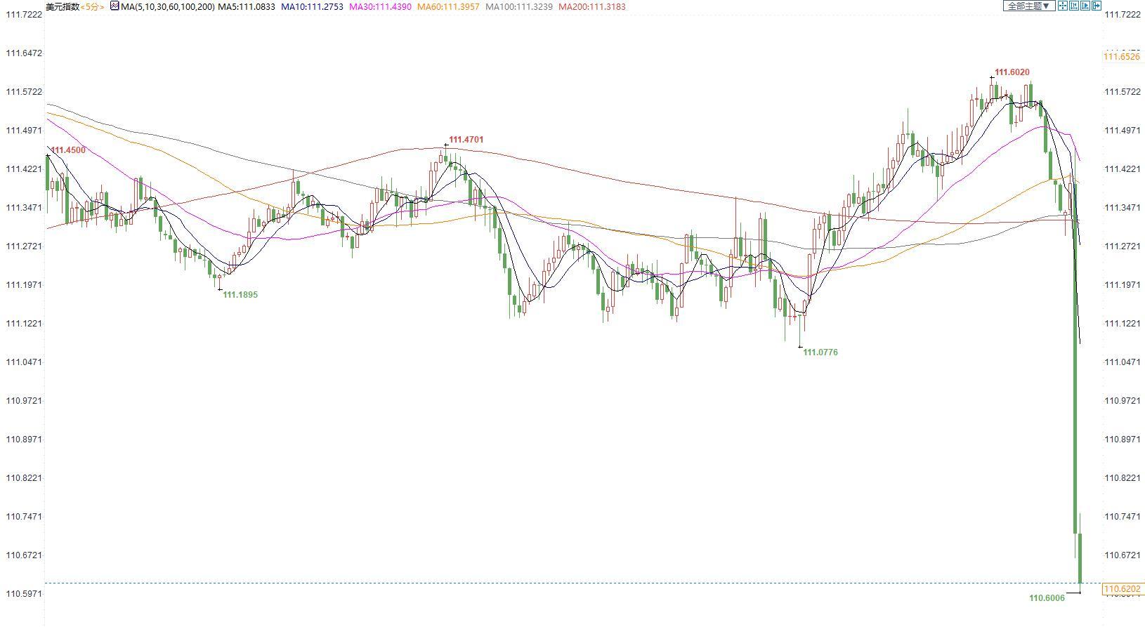 其中欧元兑美元短线走高超70点;英镑兑美元短线走高近100点;澳元兑美元短线走高近70点;美元兑日元短线走低超100点;美元兑加元短线走低近80点。