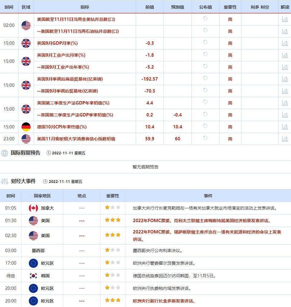 ⑤11月11日(周五)关键字:英国9月GDP,?克利夫兰联储主席梅斯特,欧洲央行副行长金多斯?