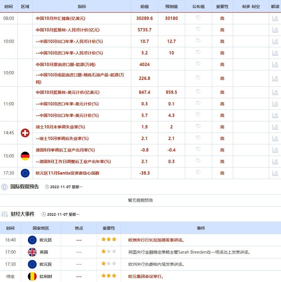 11月7日,拉加德将再次发表讲话,投资者需关注她对欧元区经济以及央行政策前景的相关言论。当天,欧元集团会议举行,投资者需关注参与者对欧元区经济和通胀的看法。