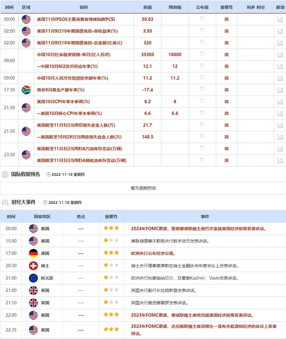 ④11月10日(周四)关键字:美国截至11月5日当周初请失业金人数,美国10月CPI