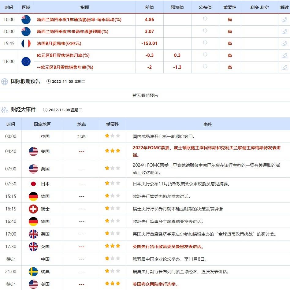 ②11月8日(周二)关键字:欧元区9月零售销售,波士顿联储主席柯林斯,克利夫兰联储主席梅斯特,美国参众两院选举