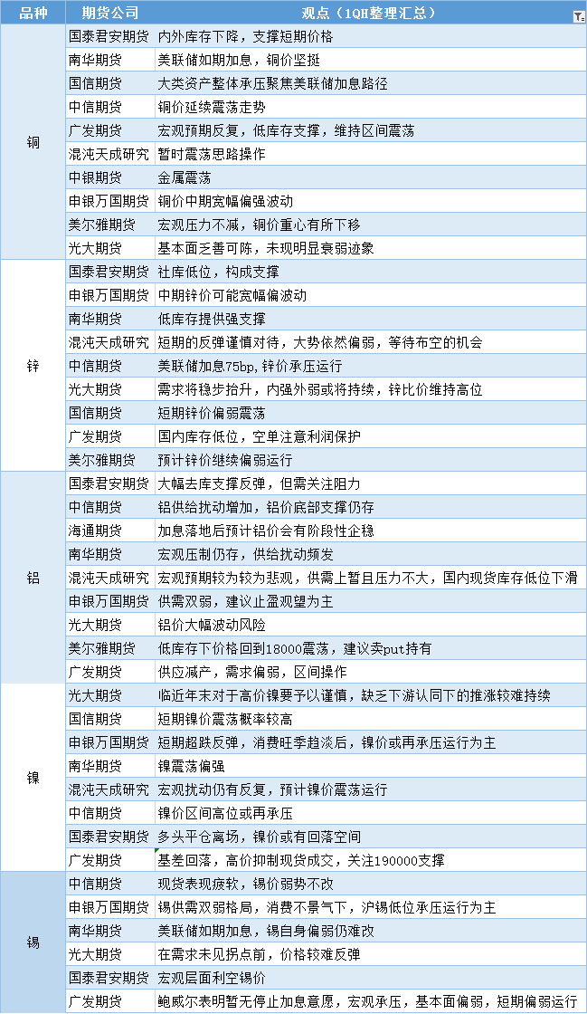标题:期货公司观点汇总一张图:11月4日有色系(铜、锌、铝、镍、锡等)