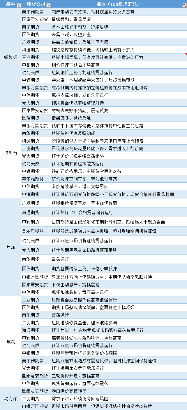 标题:期货公司观点汇总一张图:11月4日黑色系(螺纹钢、焦煤、焦炭、铁矿石、动力煤等)