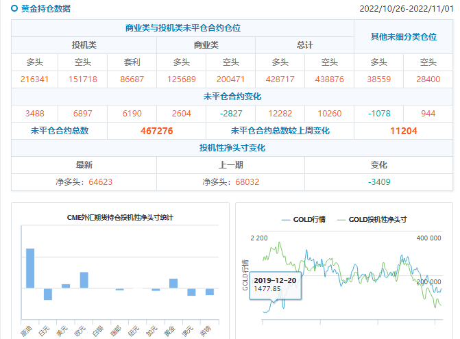 能源类持仓:截至11月1日当周,投机者所持布伦特月WTI原油净多头头寸增加35291手至425866手合约,创最近18周新高。NYMEX?WTI原油净多头头寸增加16115手至198044手合约,创最近三周新高。NYMEX汽油净多头头寸降至53289手合约,NYMEX取暖油净多头头寸增至25359手合约。NYMEX天然气净多头头寸增至36428手合约。