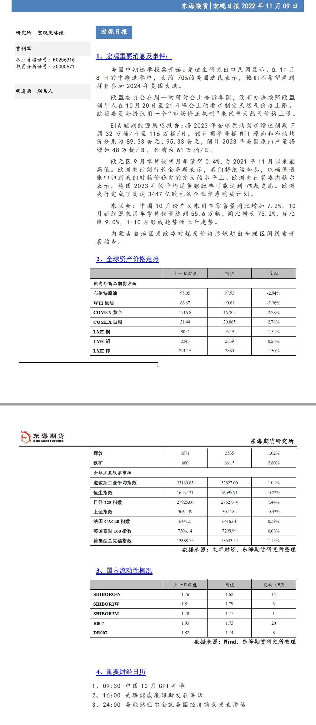 标题:【东海期货11月9日宏观日报】:美元持续下跌,全球风险偏好继续升温