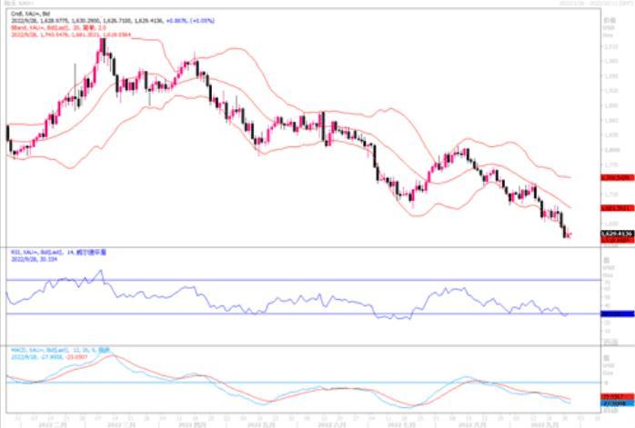 技术层面上,国际黄金周二触底反弹维持震荡走势,日线录得上影线较长小幅阳线,日线移动平均线维持较为规整向下发散排列形态,维持日线级别较为强劲偏空指引参考。小时线显示,短线金价反弹幅度扩大形成对小时线60日均线技术指标压力位回踩走势,短线震荡回落加剧小时线技术指标收窄粘合形态,连续区间走低空头动能逐步放缓。目前短期重要压力为1653附近,如果该位置被突破,很可能有一部分多头进入反击,假设价格一直维持在该位置下方,那么黄金很可能会进一步走弱。日内短线压力:1653-1646-1657,下方支撑:1620-1610-1600。