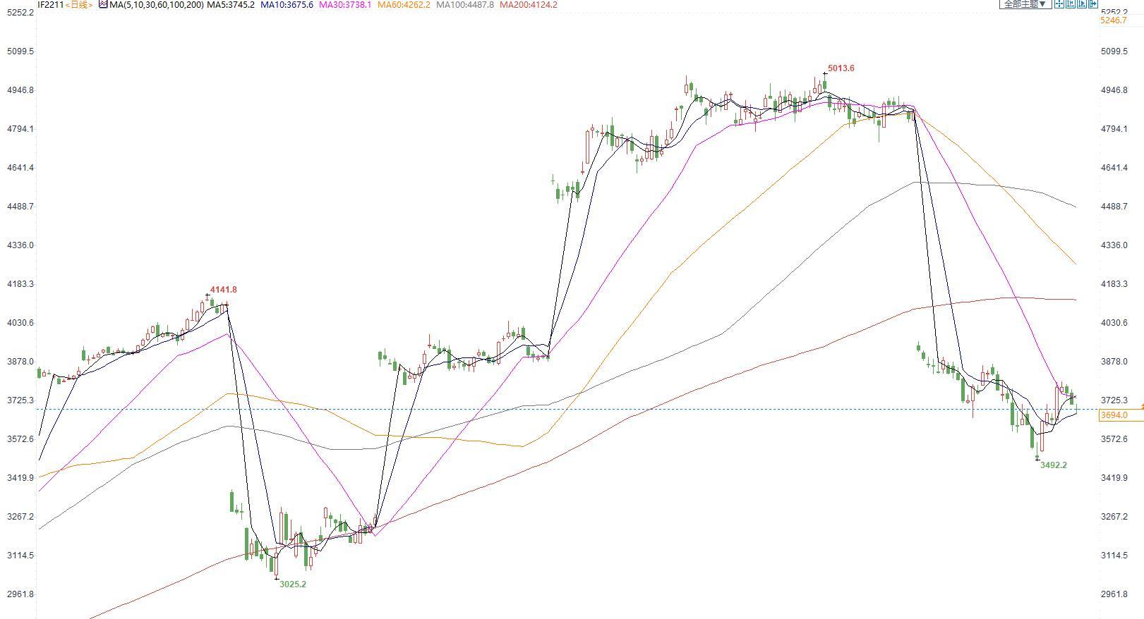 【今日涨跌】四大期指仅50期指小幅收涨。IH2211收盘价为2446.0,收涨0.15%;IF2211收盘价为3694.0,收跌0.68%;IC2211收盘价为6106.0,收跌0.40%;IM2211收盘价为6616.0,收跌1.01%。
