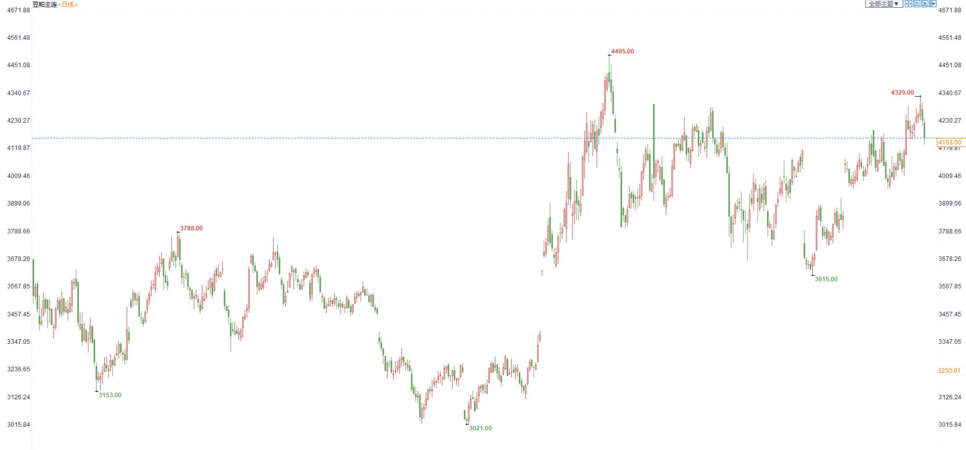 豆粕2301合约日内跌2.02%,收盘价4163元/吨,现货张家港43%蛋白豆粕5515元/吨。