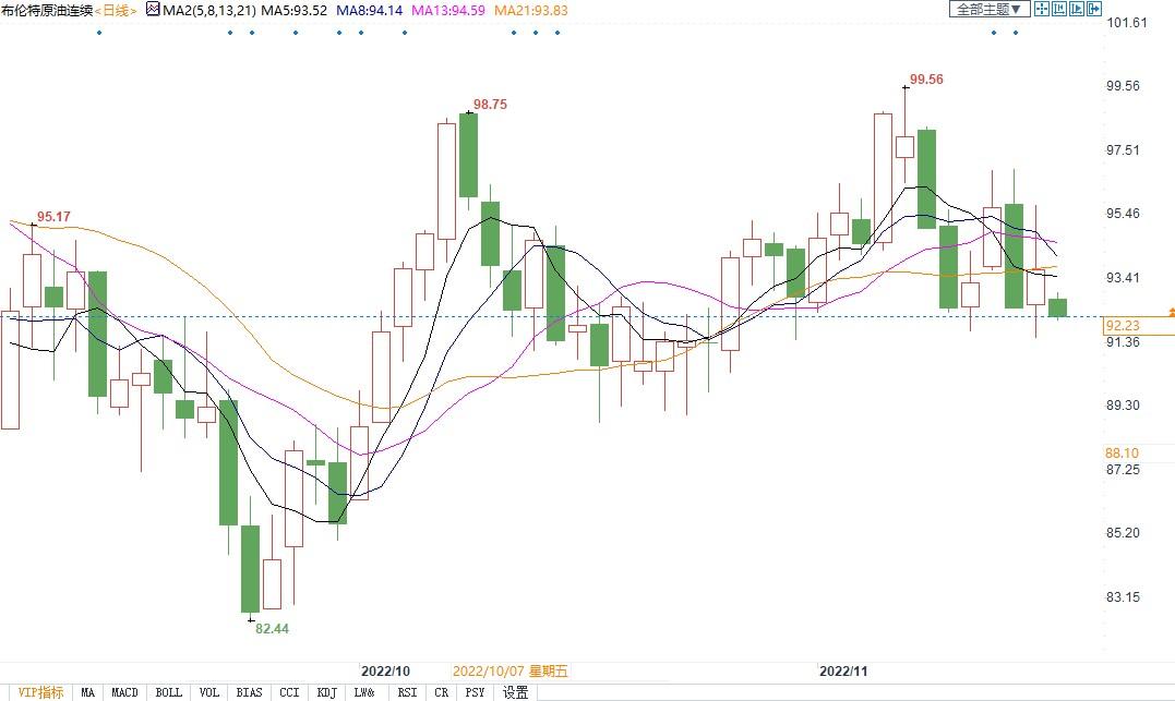 北京时间11月16日13:45,布伦特原油主力合约价格报92.20美元/桶。