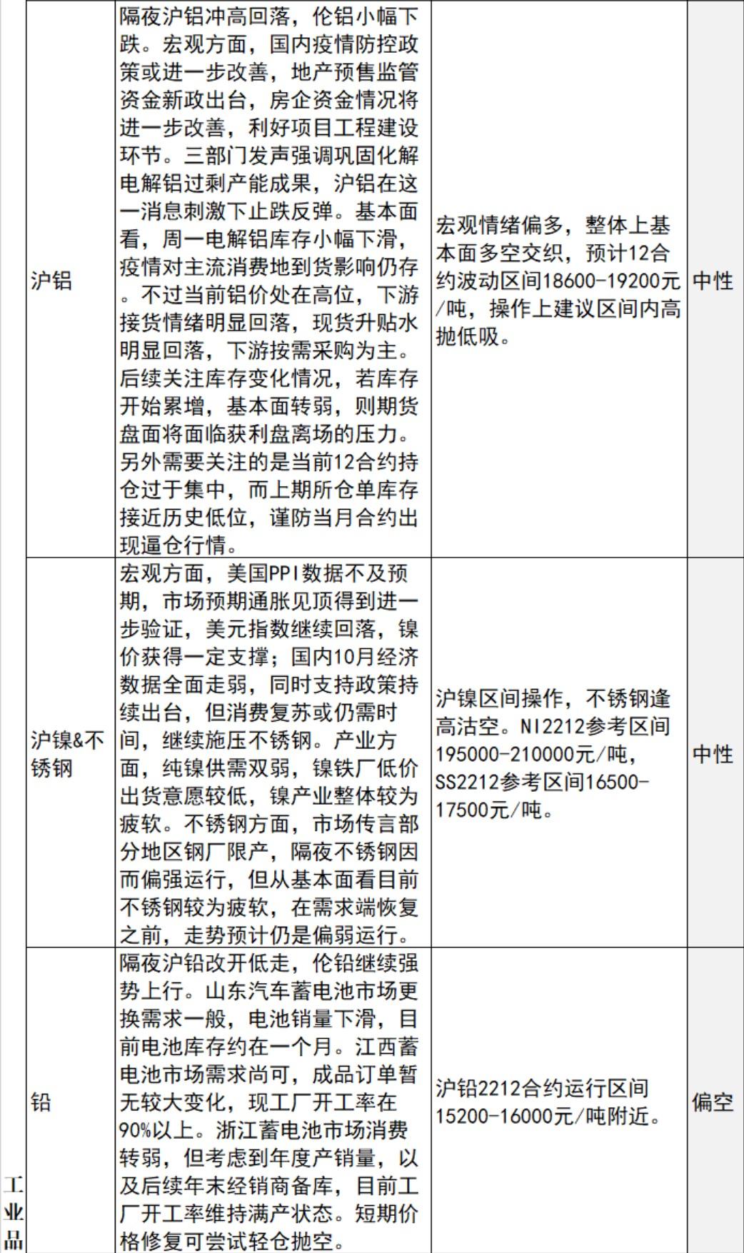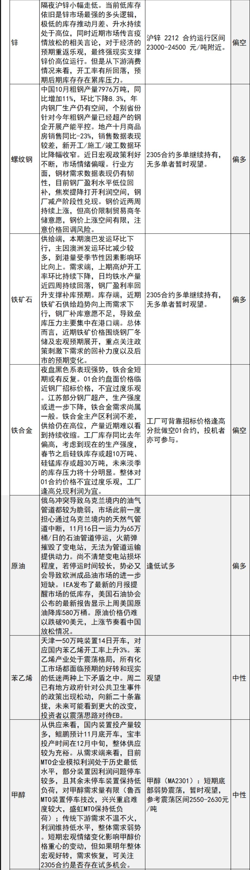 螺纹钢:钢价近两周持续上涨,但高价限制贸易商冬储意愿,钢价上涨空间有限,注意价格回调风险。