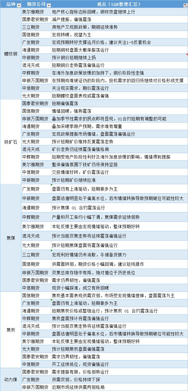 期货公司观点汇总一张图:11月16日黑色系(螺纹钢、焦煤、焦炭、铁矿石、动力煤等)