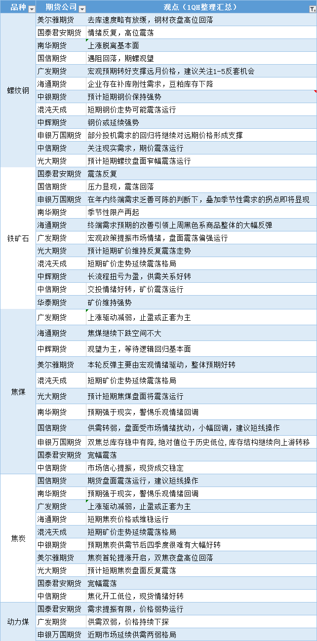 标题:期货公司观点汇总一张图:11月17日黑色系(螺纹钢、焦煤、焦炭、铁矿石、动力煤等)