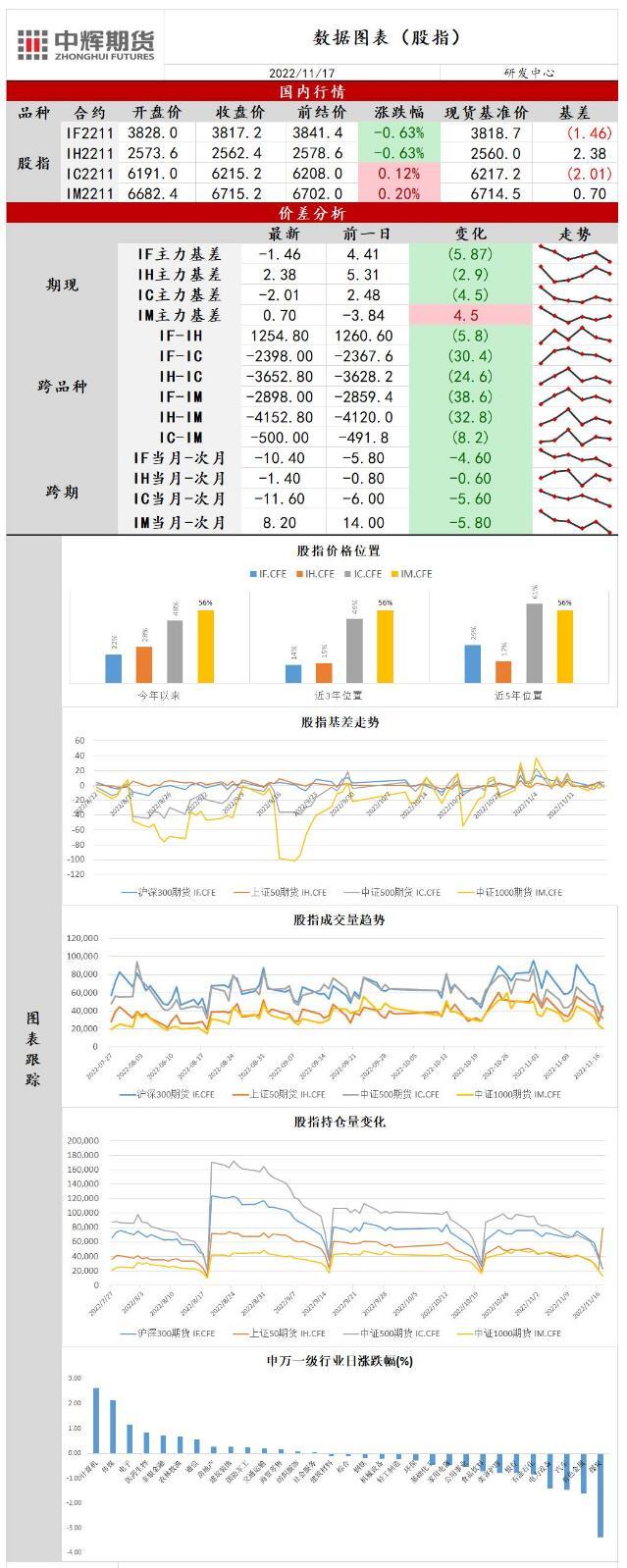 标题:中辉期货股指日报20221117:短线资金情绪谨慎,股指延续震荡整理