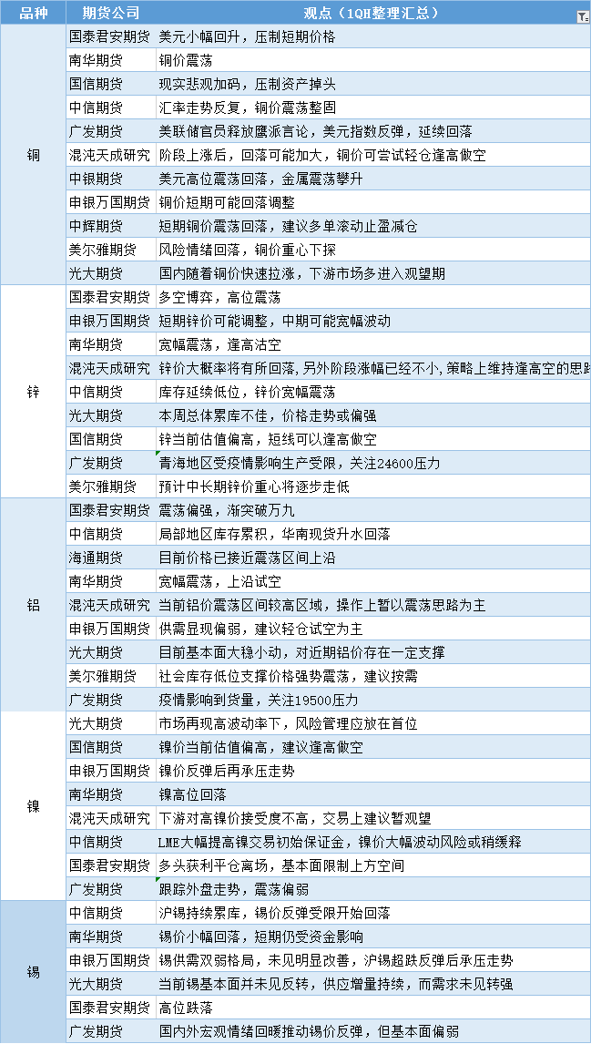 标题:期货公司观点汇总一张图:11月18日有色系(铜、锌、铝、镍、锡等)