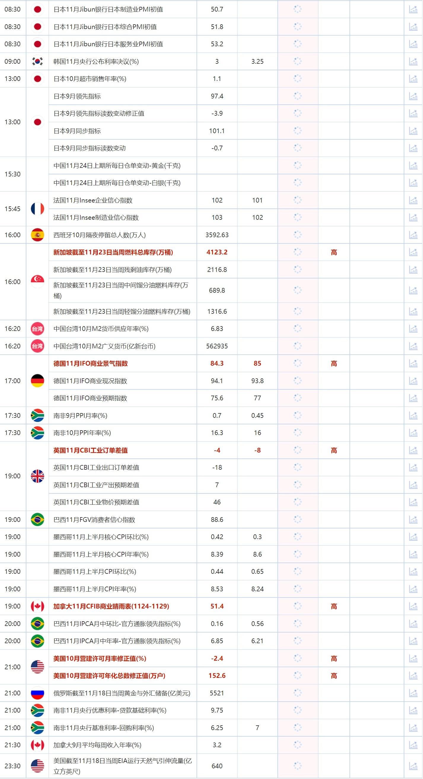 11月24日重点数据和大事件前瞻