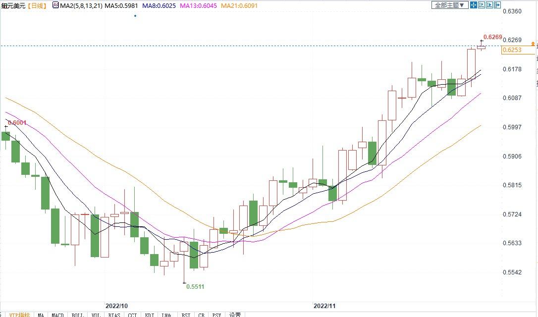 北京时间11月24日14:30,纽元兑美元报0.6253/55