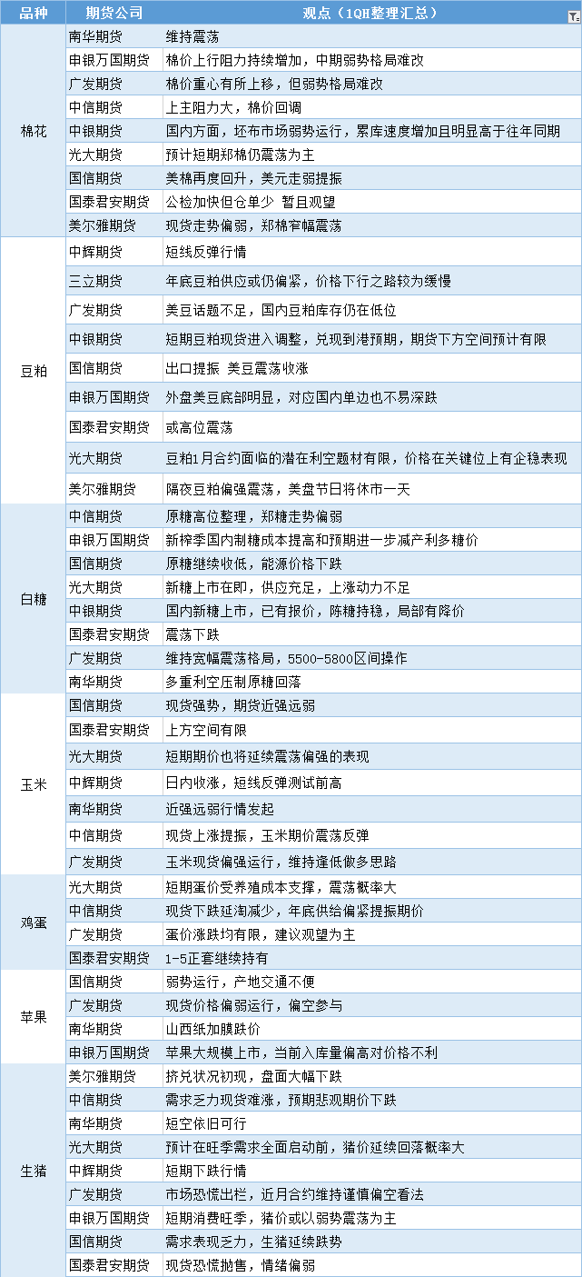 标题:期货公司观点汇总一张图:11月24日农产品(棉花、豆粕、白糖、玉米、鸡蛋、生猪等)