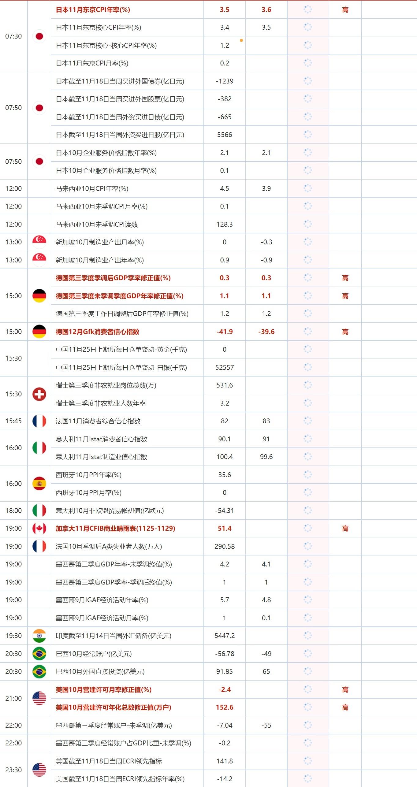 07:30?日本11月东京CPI年率(%)?,?前值?3.5?,?预期值?3.6?,?公布值:待发布