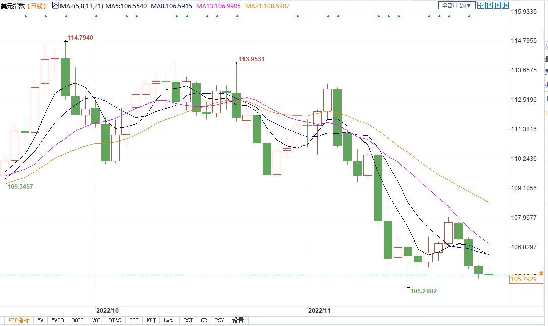 北京时间11月25日14:46,美元指数报105.80