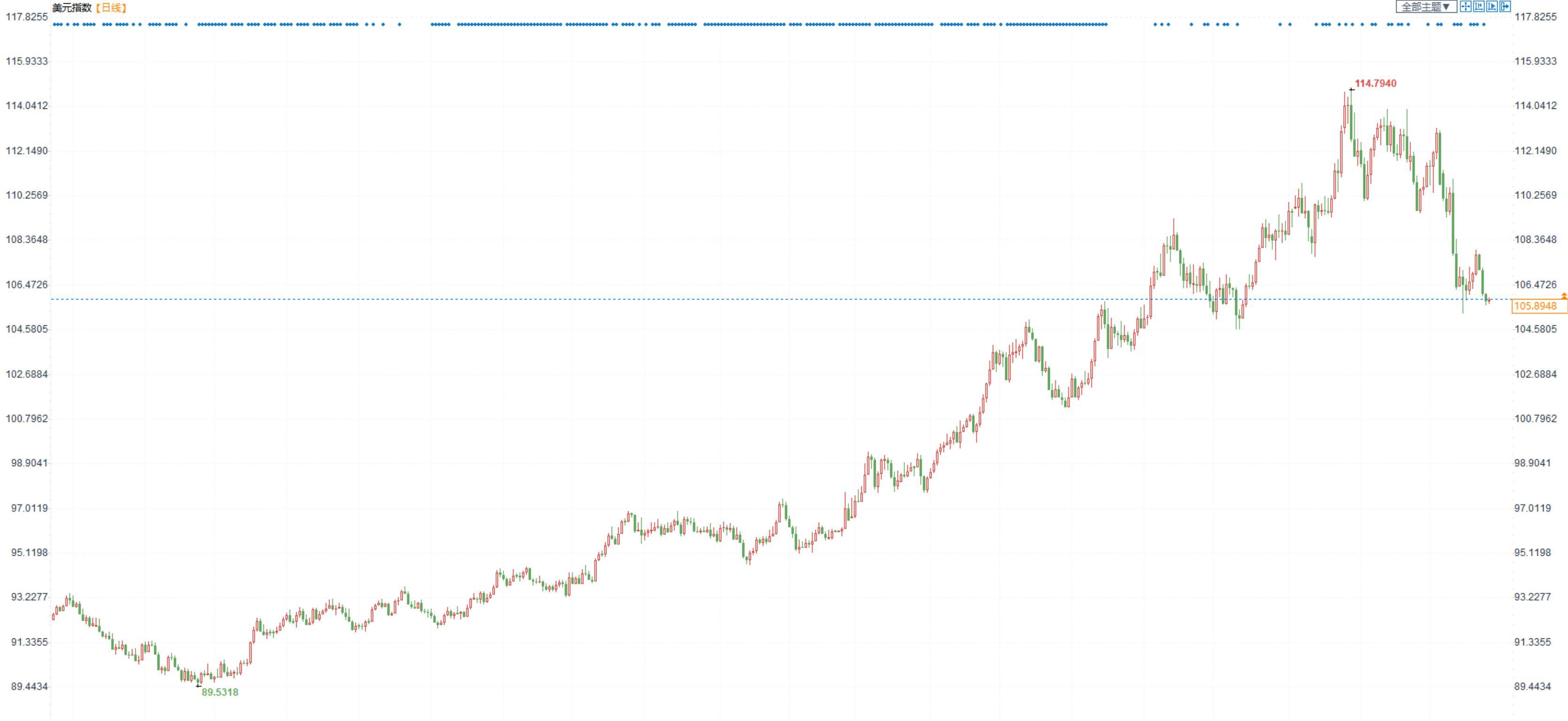 美元指数回落调整,美联储放缓升息步伐的预期给美元下行的压力。不过,全球疫情形势和地缘局势担忧情绪限制美元下行